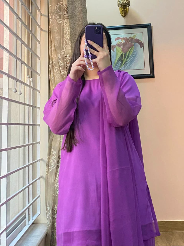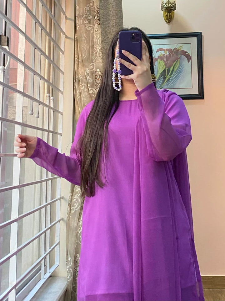 Elevate your festive and formal wardrobe with this gracefully designed 3-piece chiffon ensemble. Crafted from premium lightweight fabrics and finished with refined detailing, this outfit delivers elegance, comfort, and timeless charm.