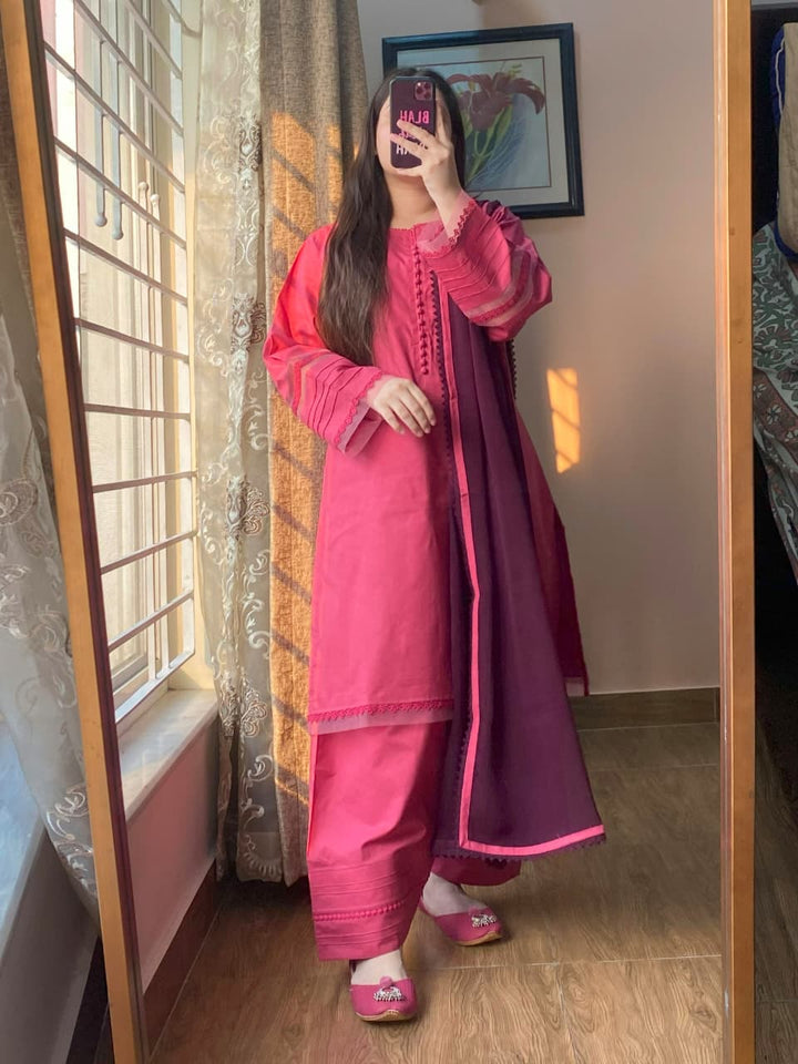An elegant fusion of seasonal comfort and graceful detailing, this 3-piece Dobby Khaddar suit offers refined styling with timeless appeal — perfect for winter gatherings and everyday sophistication.
