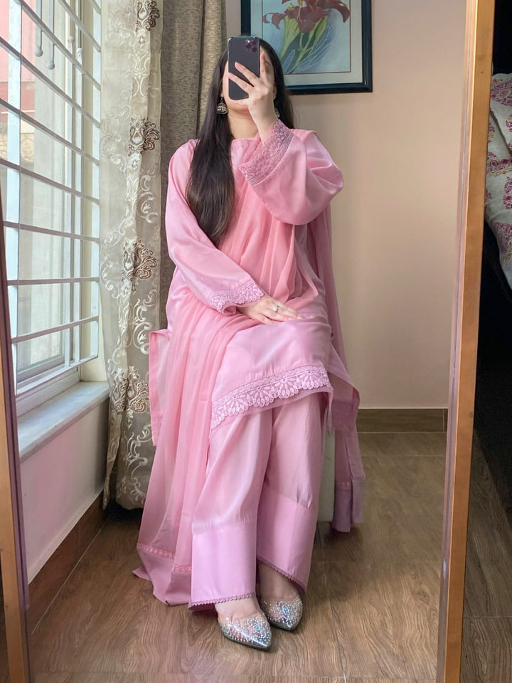 Elevate your traditional wardrobe with this elegant 3-piece ensemble, crafted from premium fabrics and detailed with delicate embellishments.