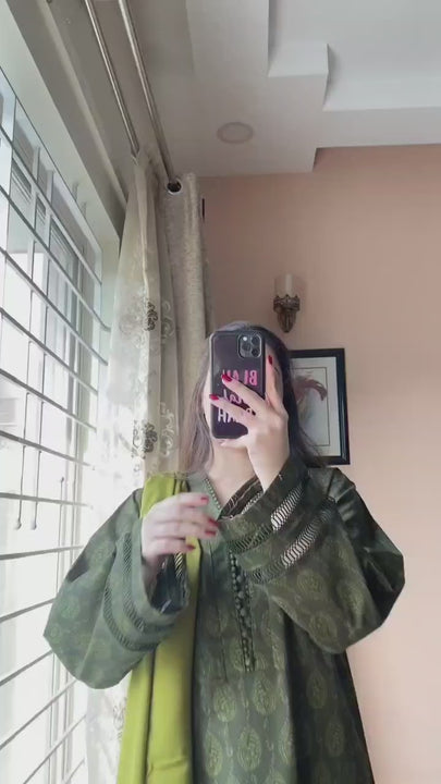 A timeless blend of comfort and elegance, this 3-piece printed Slub Khaddar suit features intricate lace detailing and a warm Marina shawl — perfect for refined winter styling.
