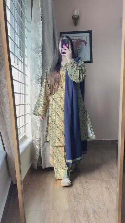 3-PIECE PRINTED SLUB KHADDAR STITCHED SUIT WITH PLAZO