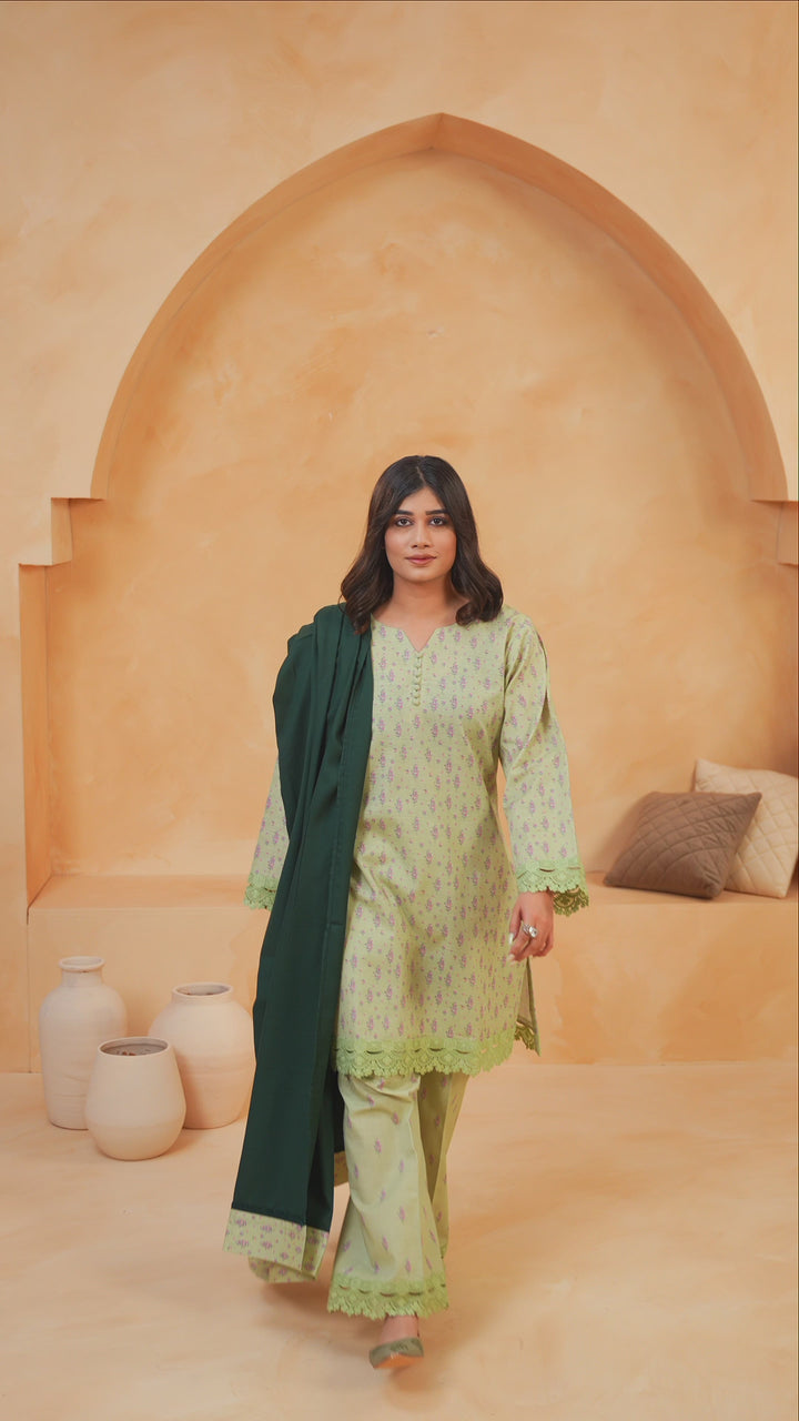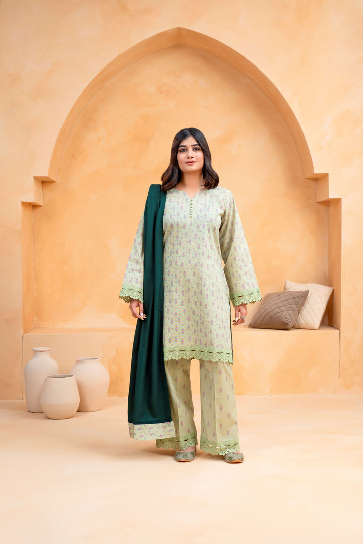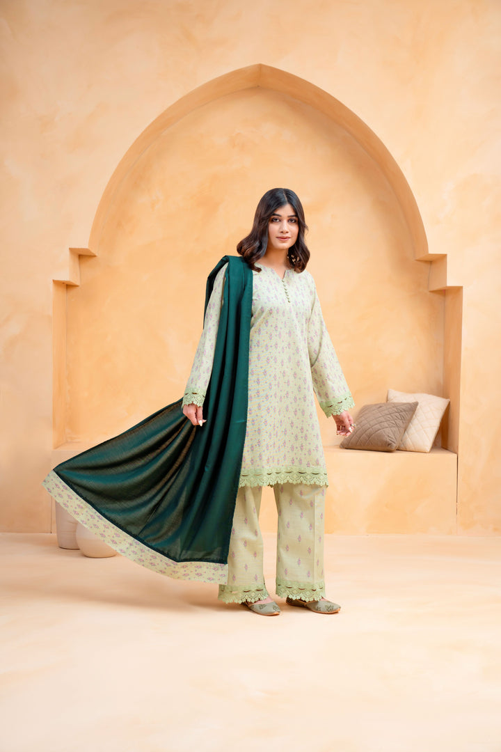 A refined blend of winter warmth and timeless elegance, this 3-piece Premium Slub Khaddar suit is crafted to exude sophistication and comfort. With thoughtful lace detailing and contrast accents, it’s a perfect choice for those who appreciate understated luxury and graceful style.