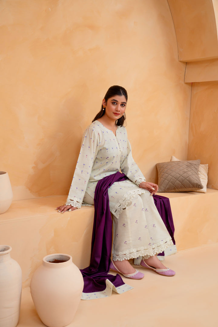 A refined blend of winter warmth and timeless elegance, this 3-piece Premium Slub Khaddar suit is crafted to exude sophistication and comfort. With thoughtful lace detailing and contrast accents, it’s a perfect choice for those who appreciate understated luxury and graceful style.