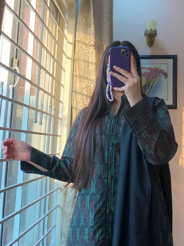 A graceful fusion of warmth, style, and sophistication — this 3-piece Slub Khaddar Printed Suit is crafted to perfection for the winter season. The ensemble features intricate lace detailing, a stylish open-front shirt, and a cozy Dhanak shawl adorned with tassels, creating a refined and modern statement.