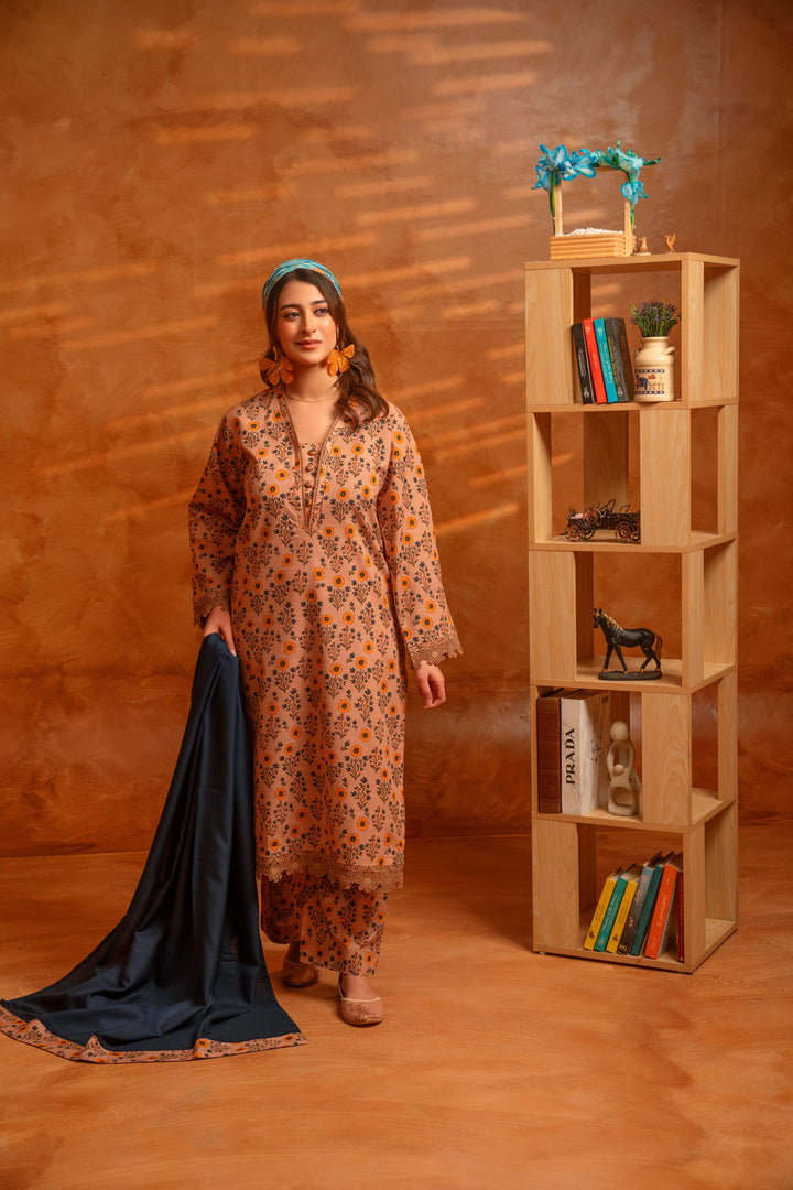 A perfect harmony of warmth, style, and refined winter elegance — this 3-piece Premium Slub Khaddar Printed Suit is crafted to elevate your seasonal look with its graceful detailing and sophisticated finish.