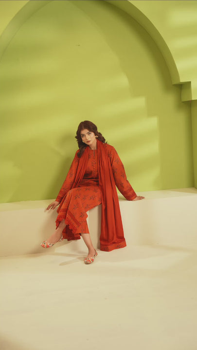 3-Piece Slub Khaddar Printed Stitched Suit with Marina Shawl