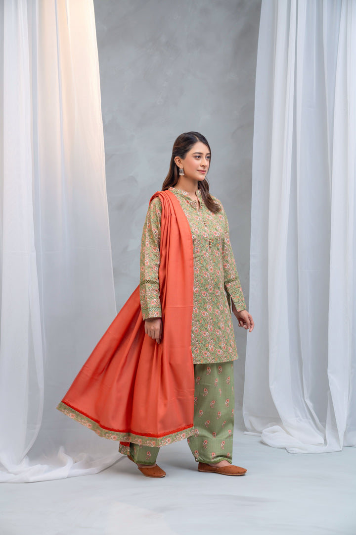 3 Piece - Khaddar Printed Dress with Farshi Shalwar
