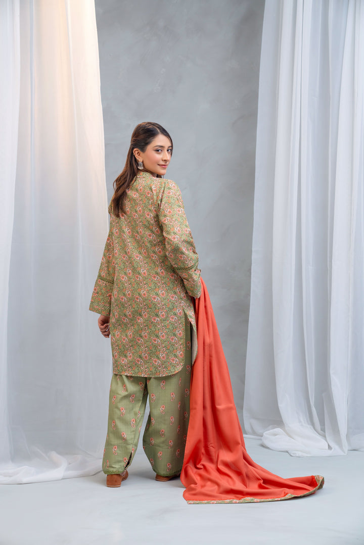 3-PIECE SLUB KHADDAR PRINTED SUIT