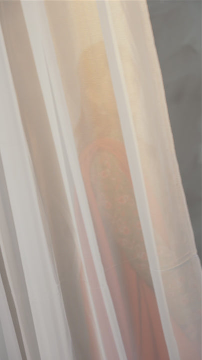 Shirt: Crafted from premium printed Slub Khaddar, the shirt features refined tailoring with a ban-collar neckline adorned with loop buttons, adding a touch of elegance to the overall design. The cut-cuff sleeves are beautifully enhanced with joint lace detailing, blending femininity with sophistication. The rounded hemline adds a graceful finish, while side pockets provide both functionality and style.