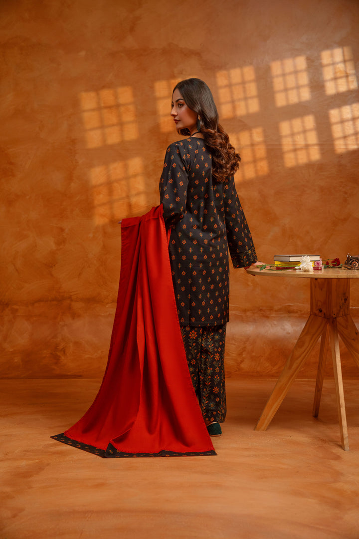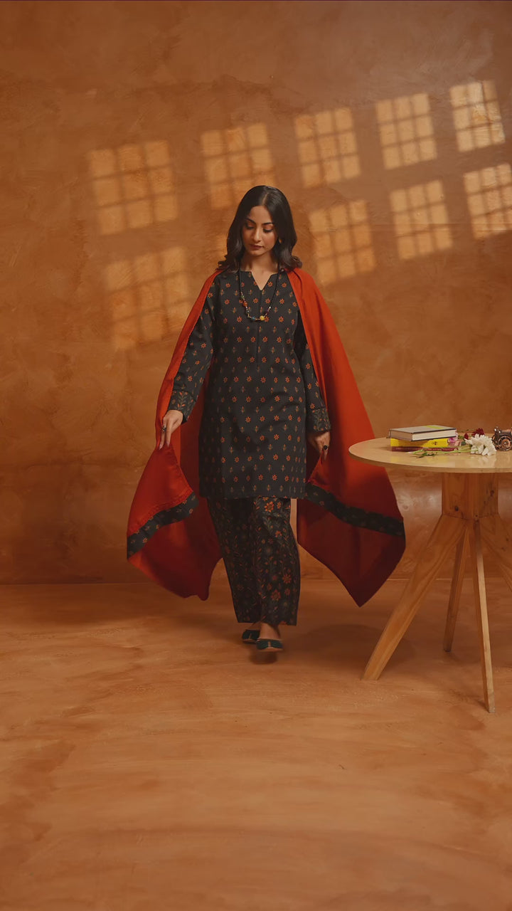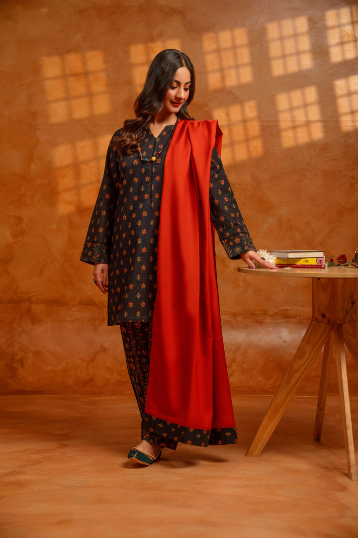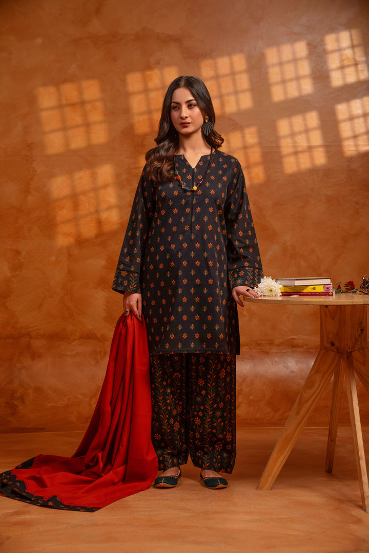 3-PIECE PREMIUM SLUB KHADDAR PRINTED STITCHED SUIT WITH SHALWAR