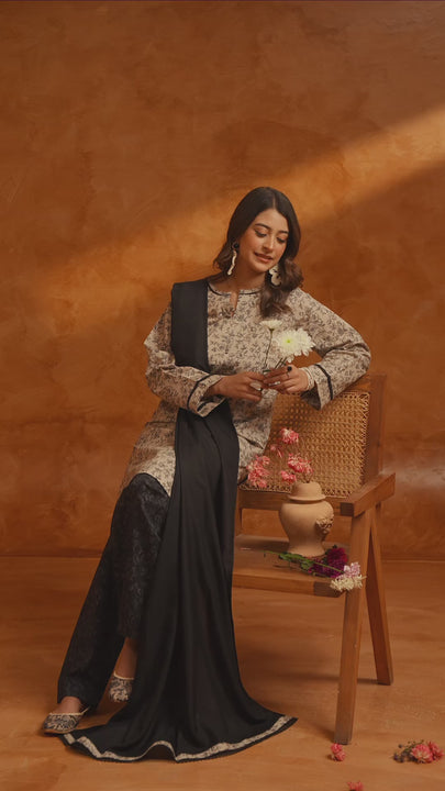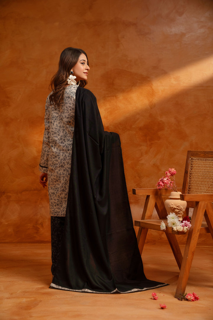 A refined fusion of tradition and modern elegance, this 3-piece Premium Slub Khaddar suit brings graceful sophistication to your winter wardrobe.