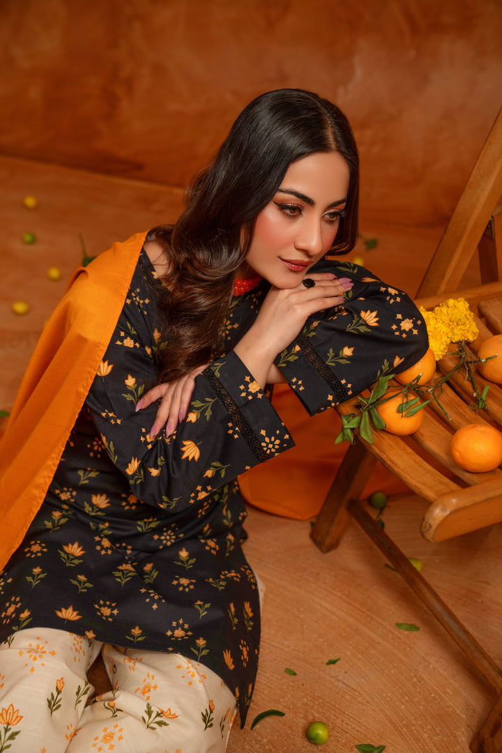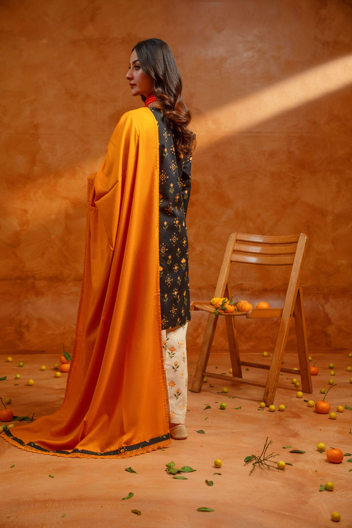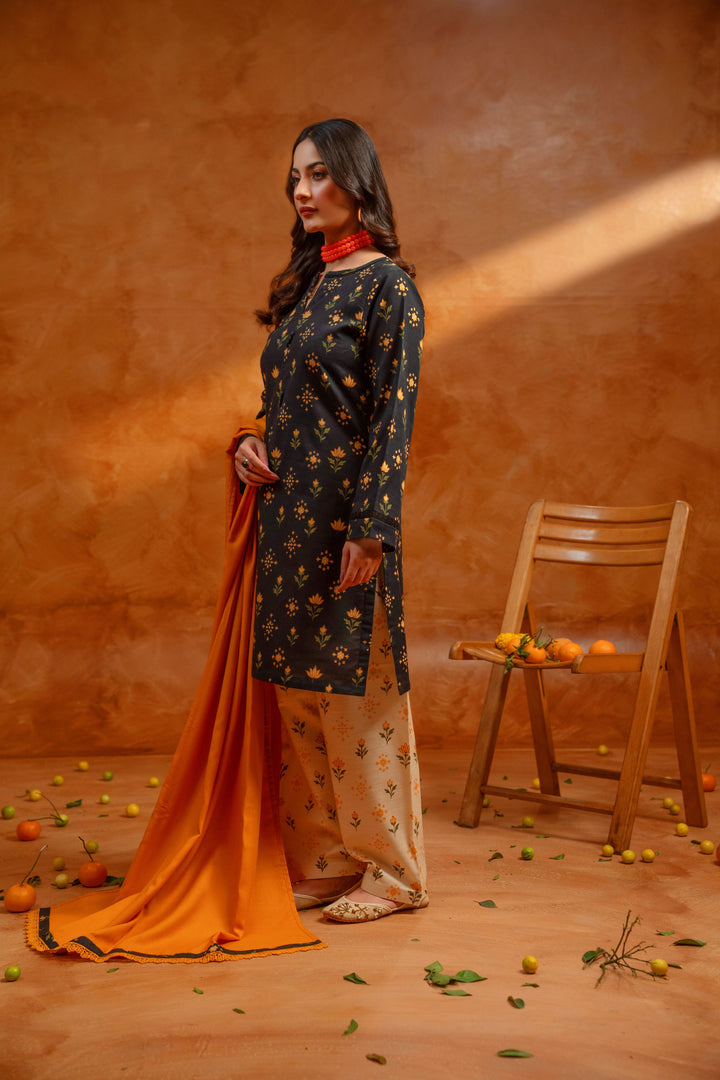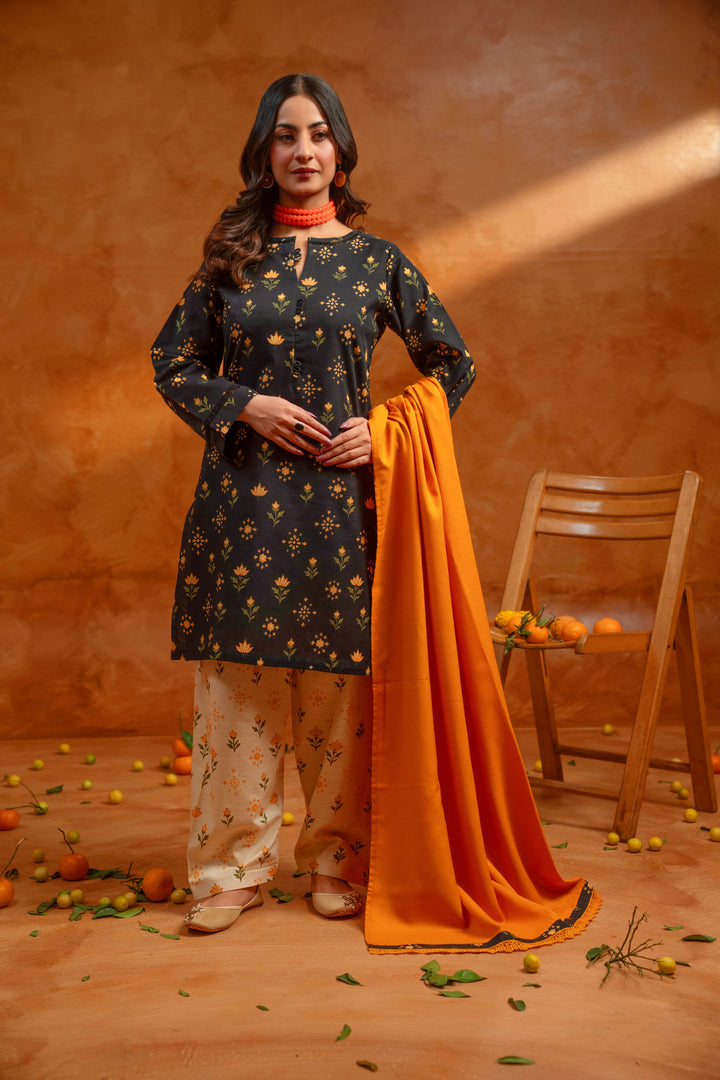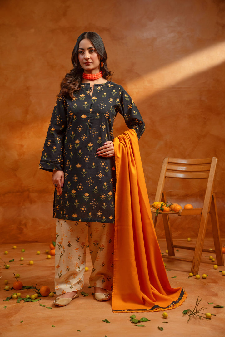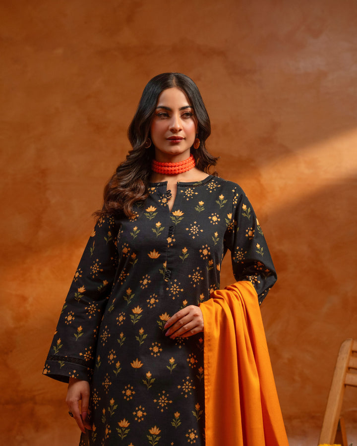 3-PIECE PREMIUM SLUB KHADDAR PRINTED STITCHED SUIT WITH SHALWAR