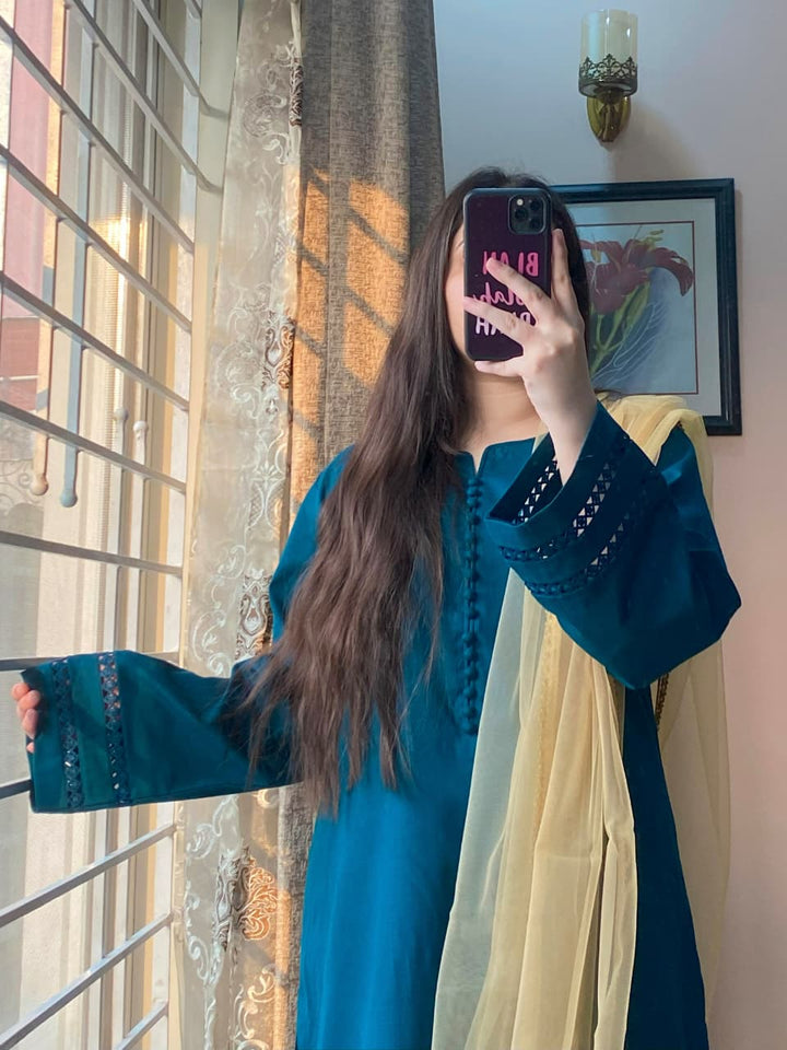 Dupatta: A lightweight Net Dupatta completes the look, finished with lace on all four sides for an added touch of sophistication and elegance. The delicate lace detailing brings balance, beauty, and a graceful flow to the ensemble.