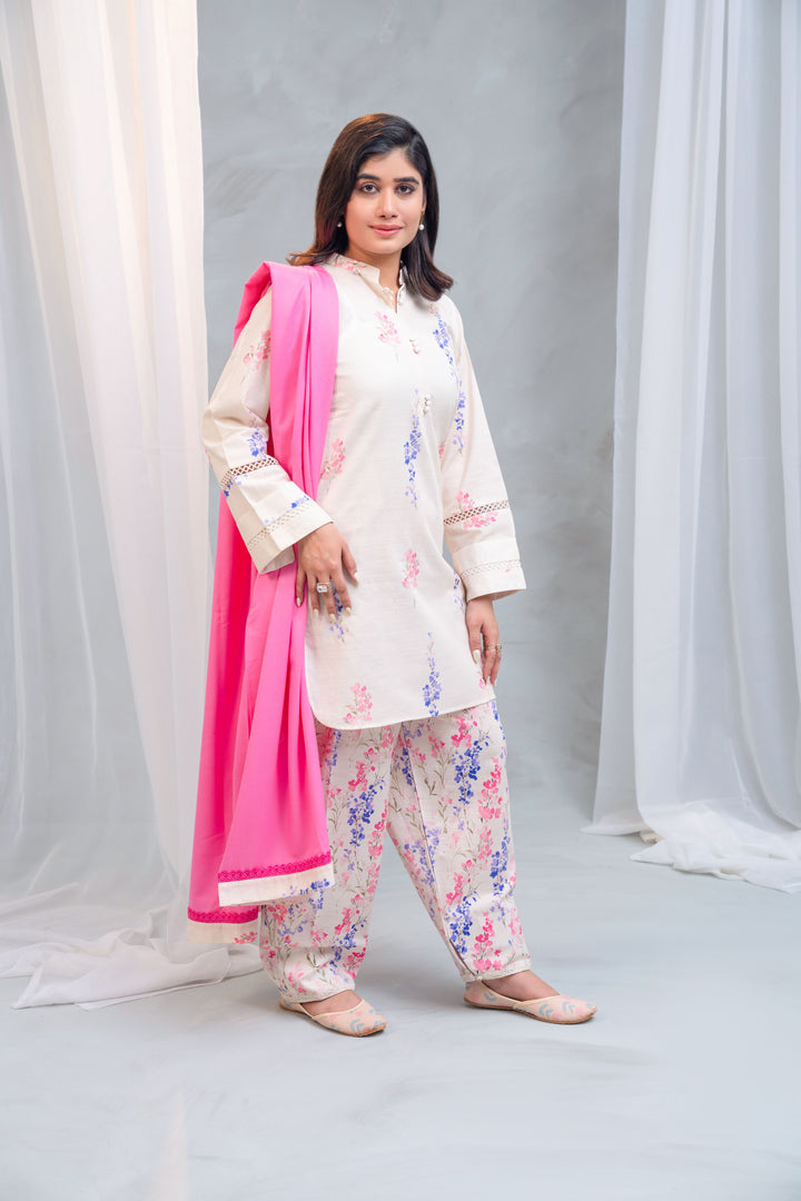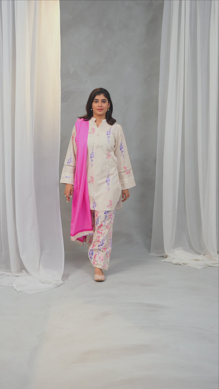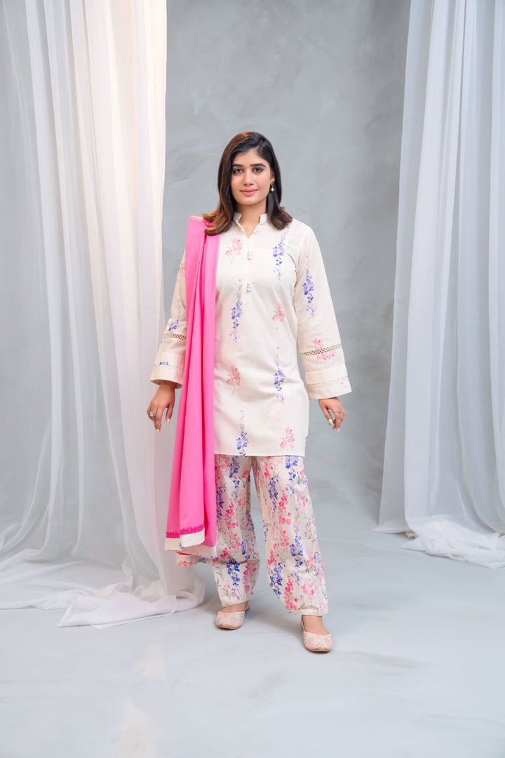 3-PIECE SLUB KHADDAR PRINTED SUIT