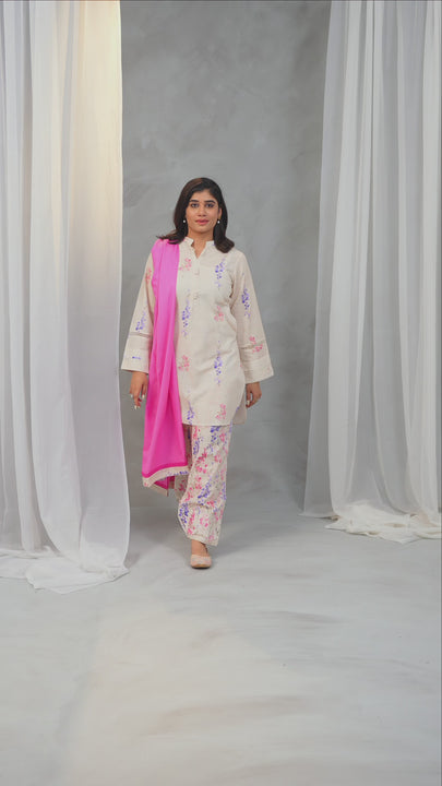 A graceful fusion of tradition and modern elegance, this 3-piece Premium Slub Khaddar suit is designed to elevate your winter wardrobe with timeless charm and warmth.