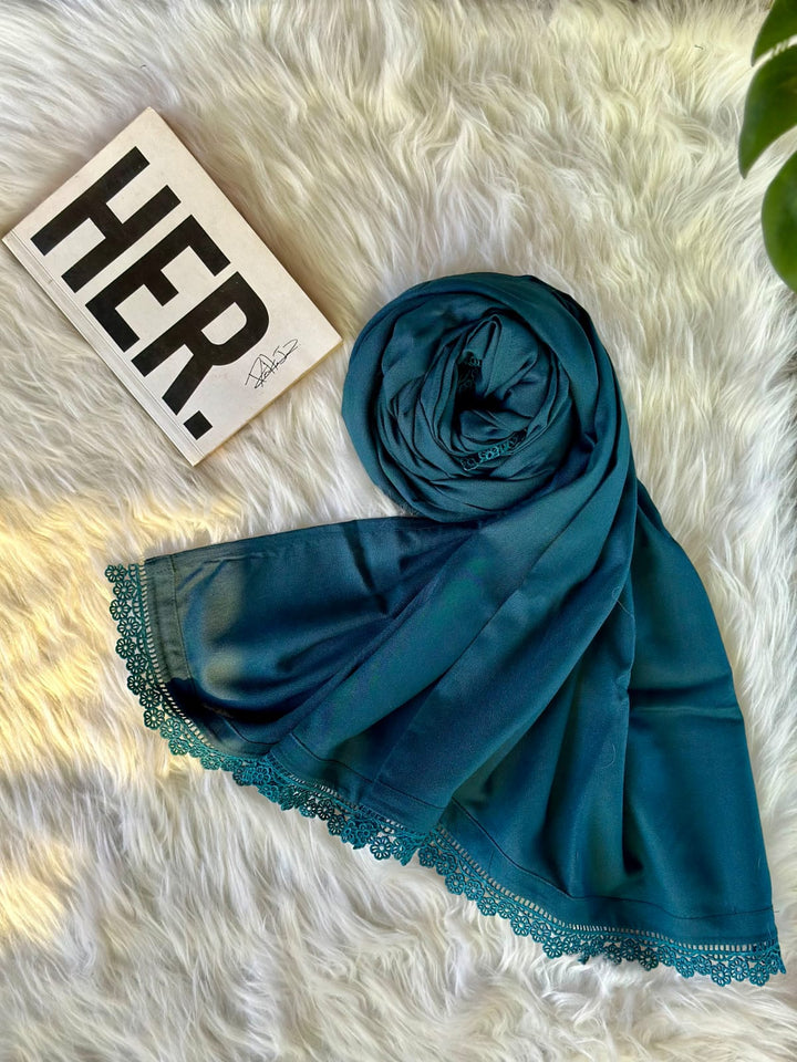 Add a touch of cool elegance to your winter look with our Zinc Blue Marina Shawl. Crafted from soft premium marina fabric, it offers cozy warmth and a beautiful drape. Delicate lace on two corners brings a refined, feminine finish—perfect for everyday chic or evening style.