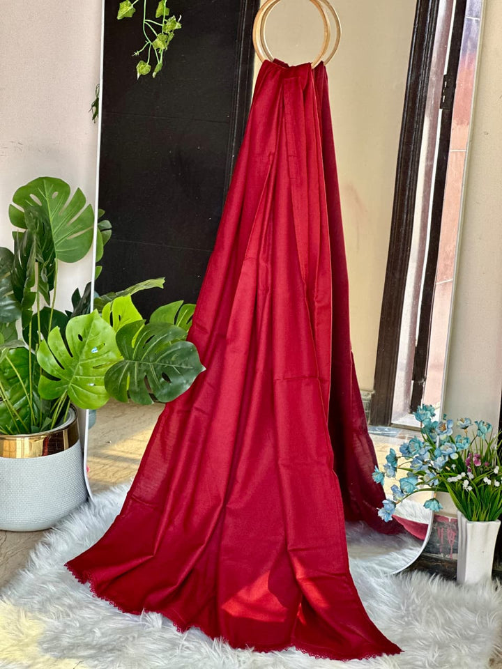 Wrap yourself in elegance with our Dark Red Marina Shawl, crafted from premium soft marina fabric for a warm, cozy, and luxurious winter feel. The rich, deep red tone adds a bold touch to any outfit, while the delicate lace detailing on two corners enhances its feminine and refined look.