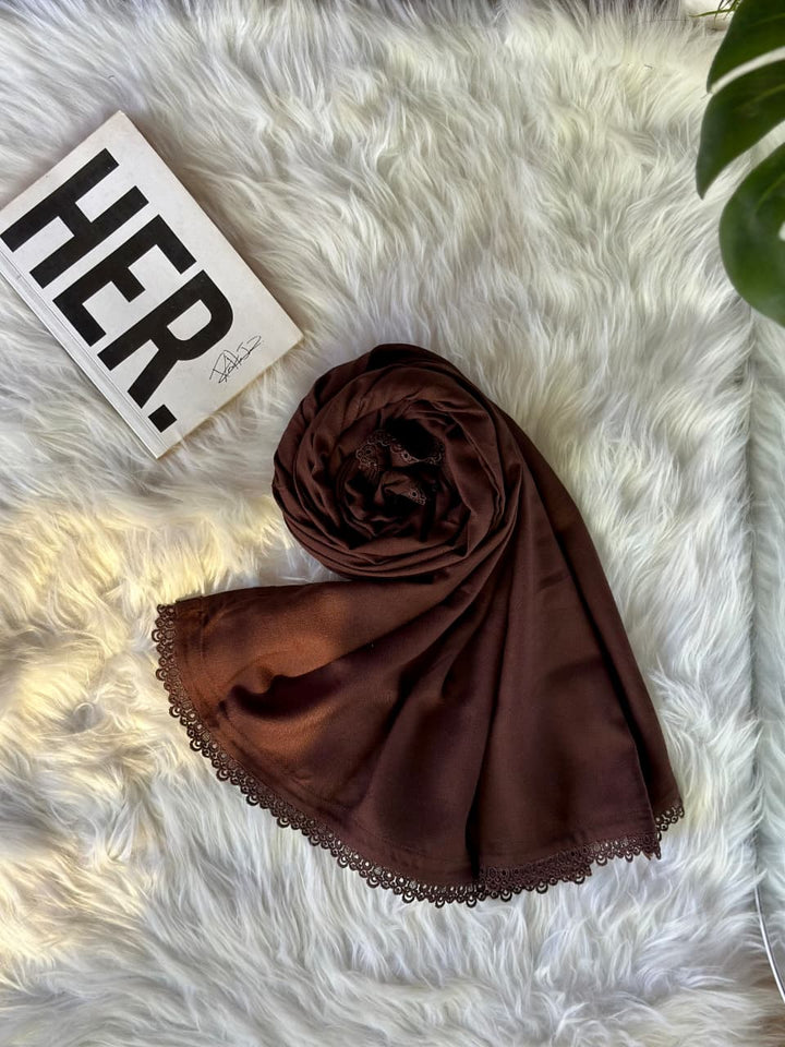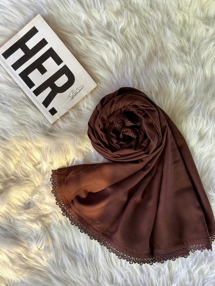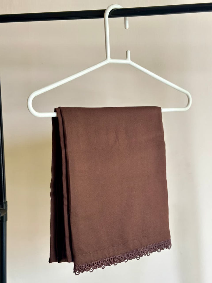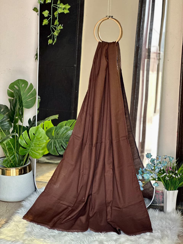 Elevate your winter style with our Brown Marina Shawl, crafted from premium soft marina fabric for a warm, smooth, and comfortable feel. The earthy brown tone adds a touch of understated elegance, while the delicate lace detailing on two corners enhances its graceful and feminine appeal.
