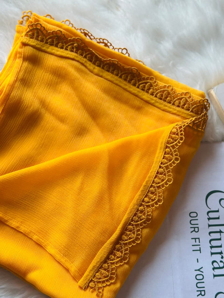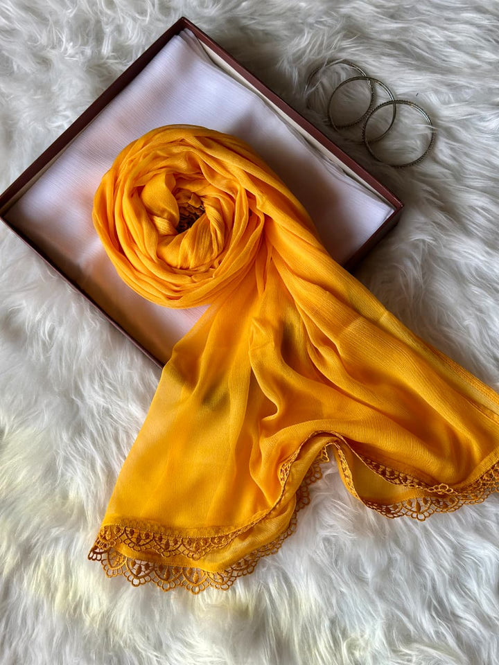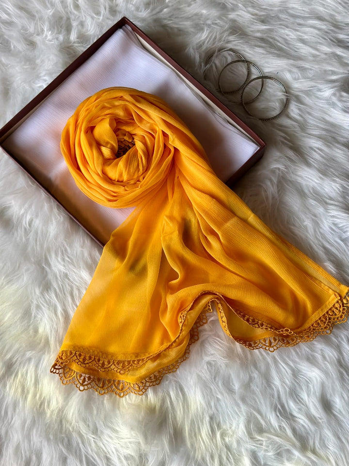 Marigold Chiffon Dupattas With Lace