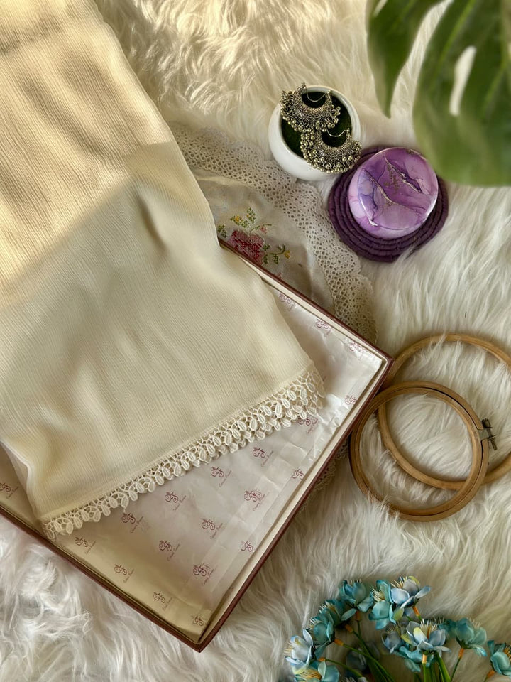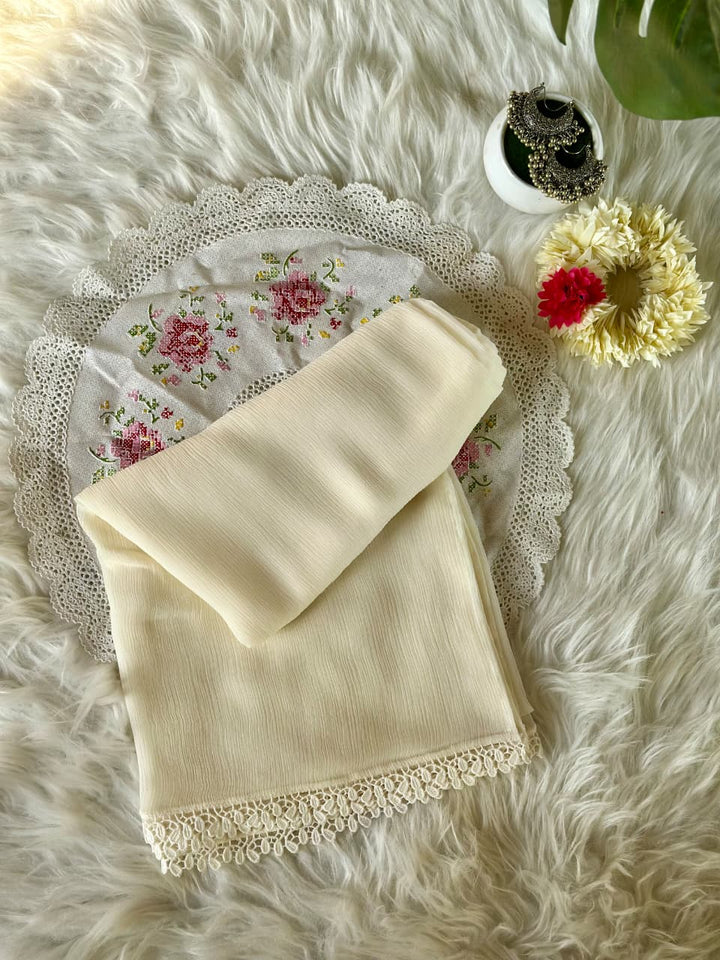Cream Chiffon Dupattas With Lace